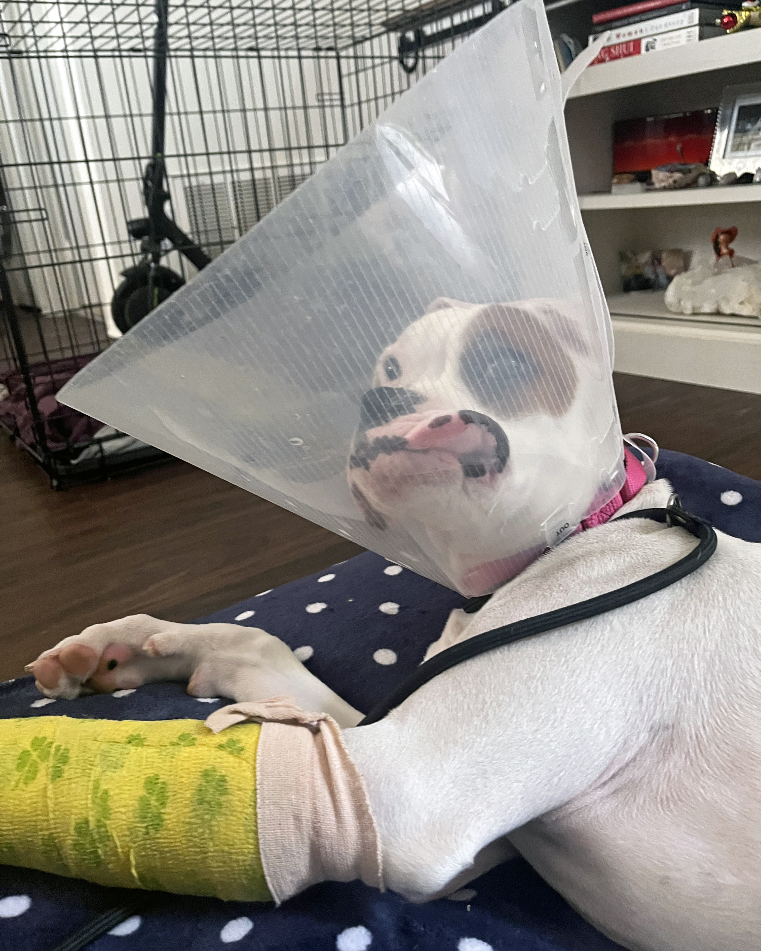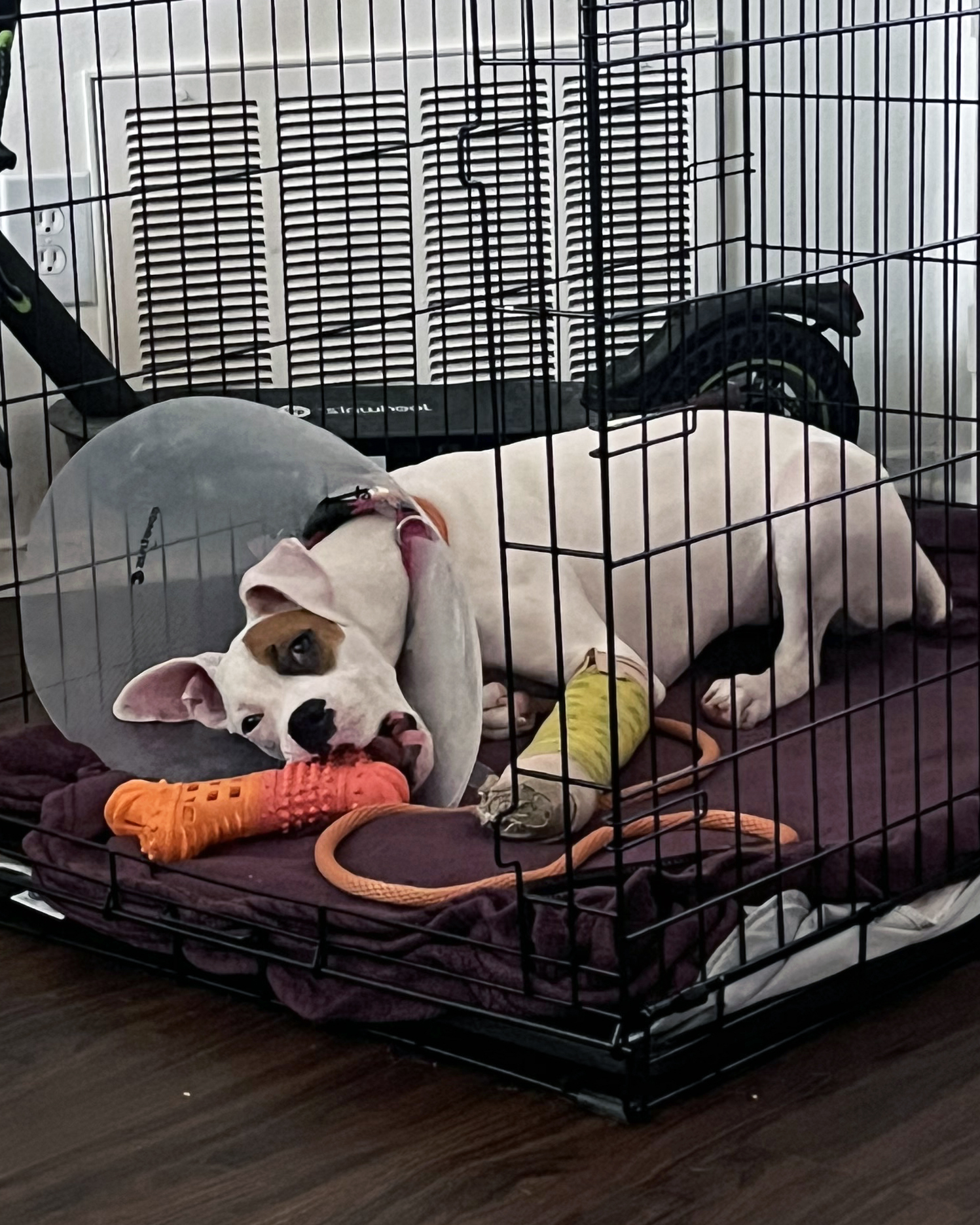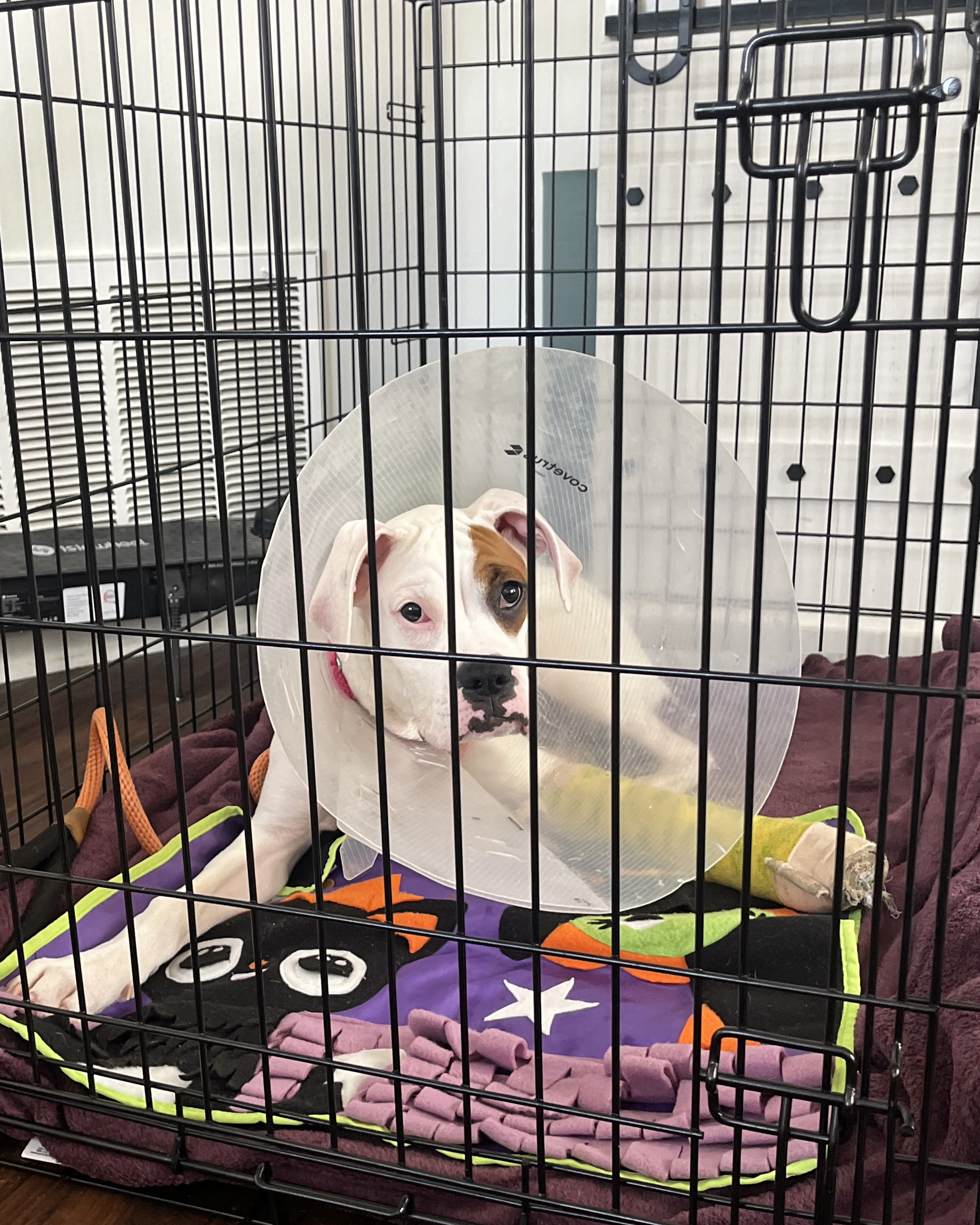 We’re putting out an urgent call for a very special kind of hero, a patient foster parent who can help a young pup named Bullseye find her footing again. Bullseye is a 5-month-old Boxer mix who came to us as a stray through the Santa Paula Police Department. Since arriving, she’s captured our hearts with her sweet, curious spirit. Now, she needs a safe and quiet place to heal. Bullseye is currently recovering from a broken paw that left four of her toes fractured. She’s looking for a quiet, cozy place to recover and avoid further injury while she heals!