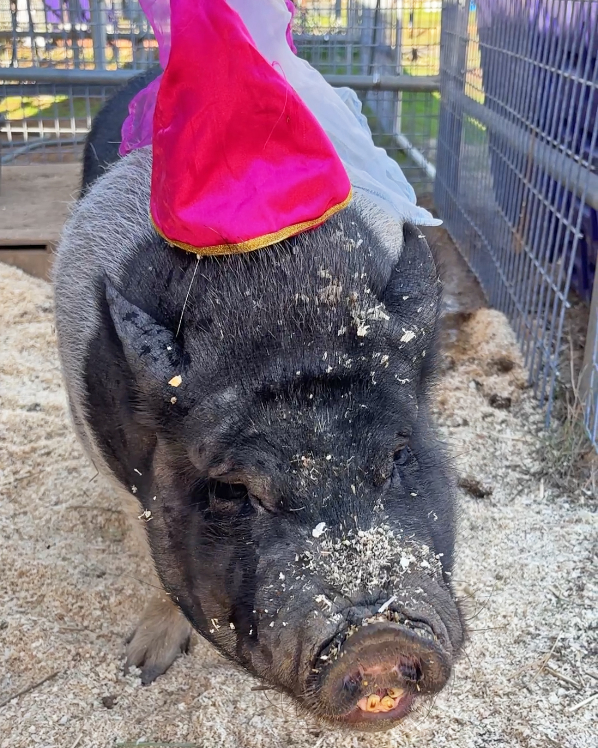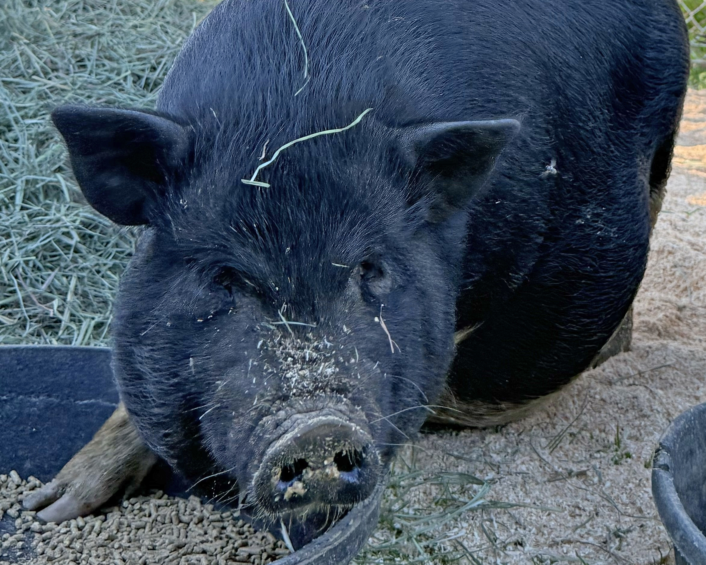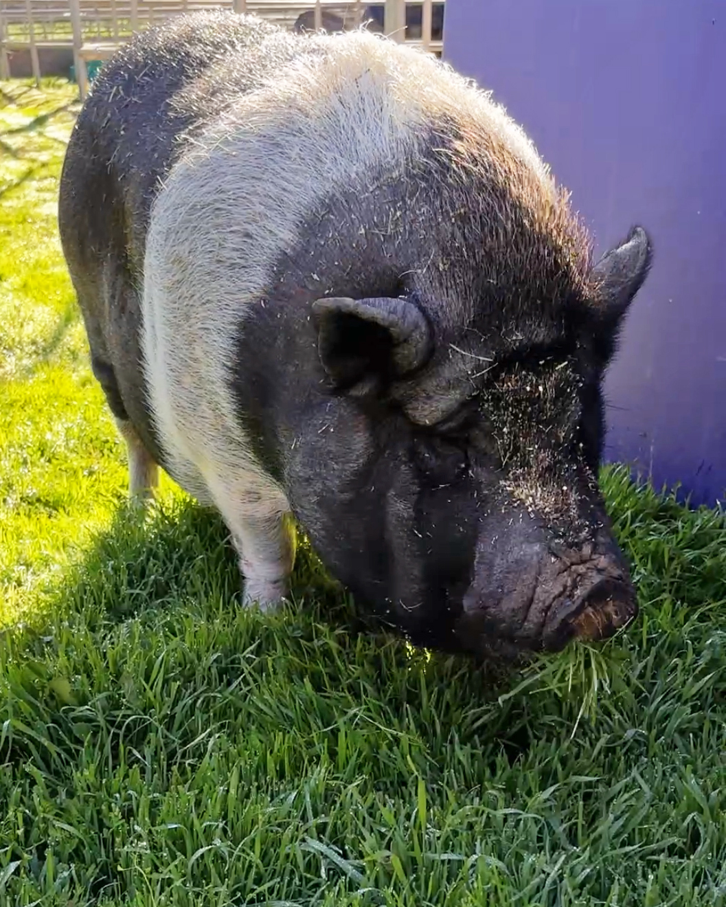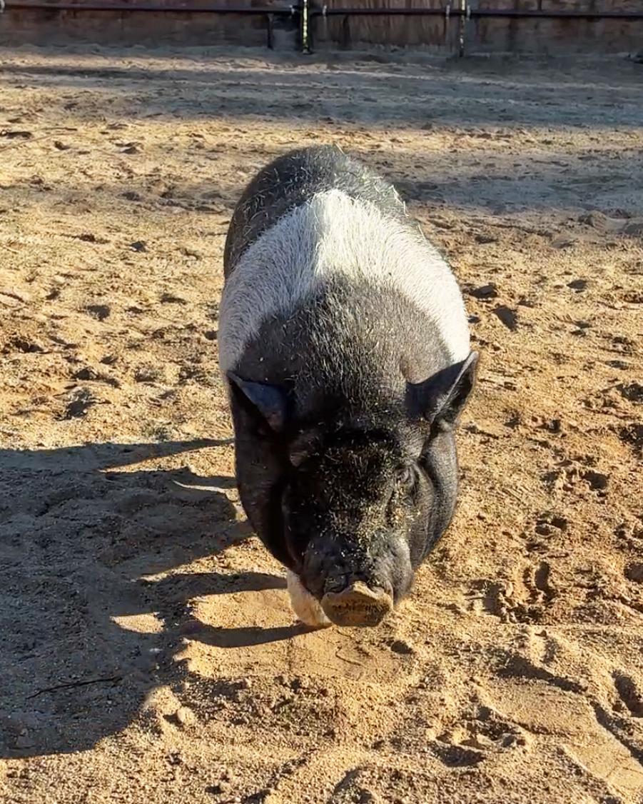 Oreo has been patiently waiting for her forever home for nearly 100 days, and this expressive potbelly pig is more than ready for her next chapter. Sweet, social, and full of personality, Oreo is known for her signature oinks and lively "conversations" with staff and even the horses! She always has something to say, especially when snacks are involved. Her enthusiastic chomps can be heard from all the way across the barn, making her a must-meet for anyone who enjoys a little farm-style ASMR.