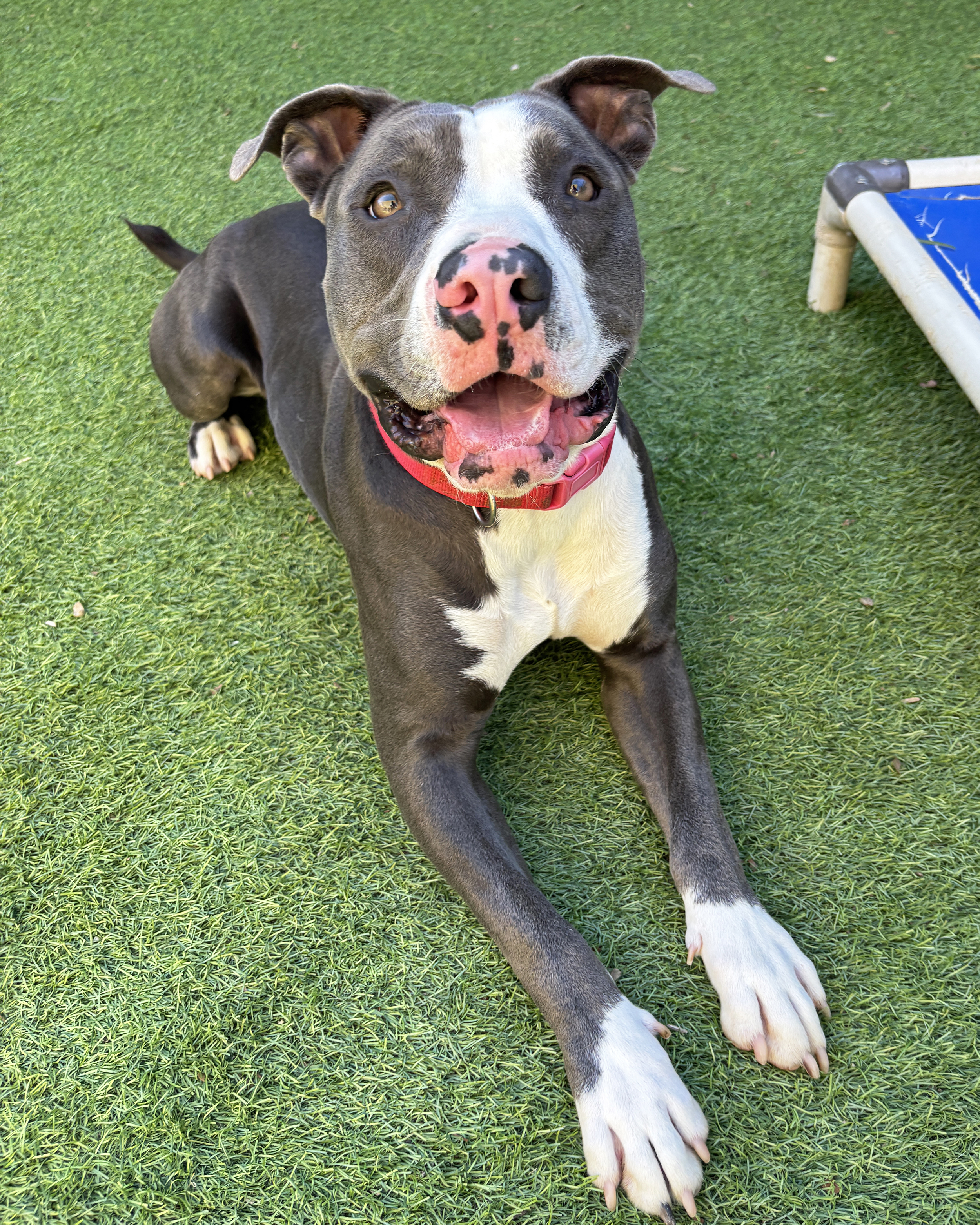 Some dogs come to the shelter for a short stay. Others, like Guava, quietly wait longer than anyone ever imagined, with unwavering faith that their person is out there. Guava has officially hit his one-year milestone here at the Humane Society of Ventura County, and while that's not something we ever want to celebrate, we do want to celebrate what a fantastic dog he is. Nearly 2-years-old now, Guava is still a young, goofy, big-hearted Pit Bull Terrier mix who has grown up right before our eyes.