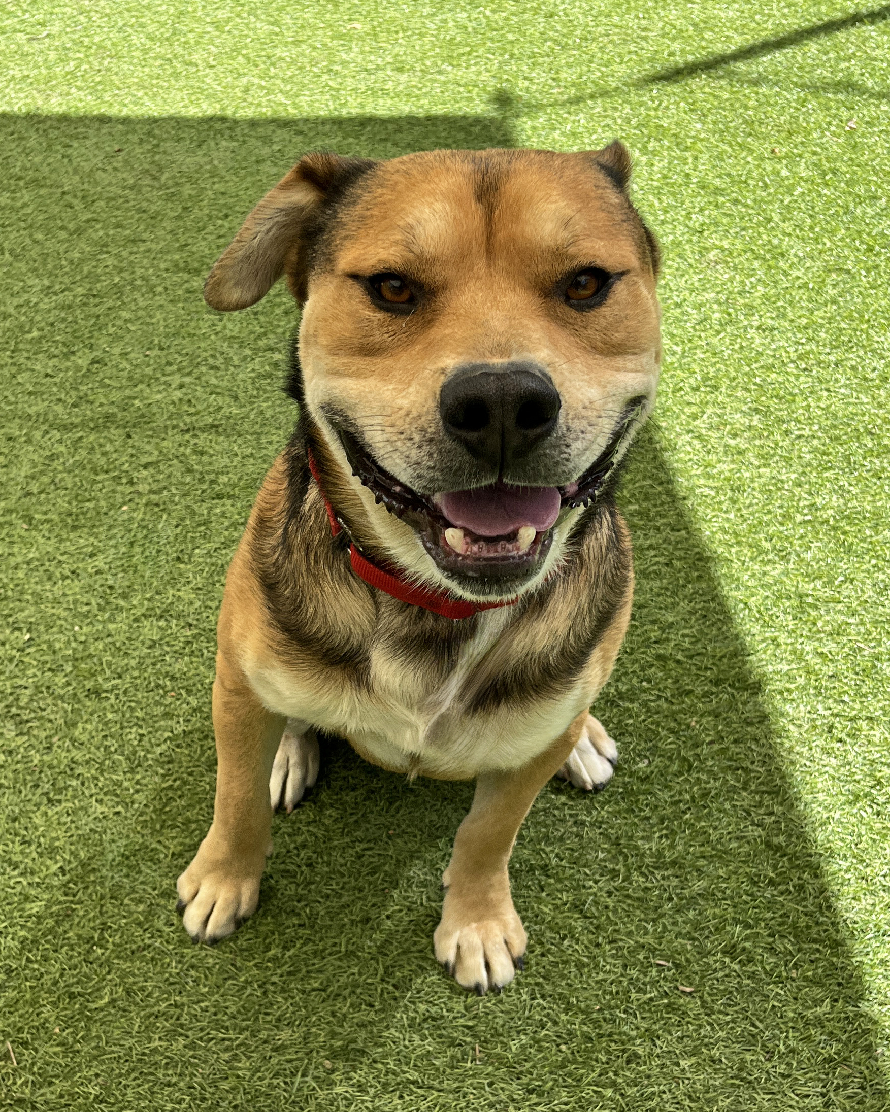 Say hello to Winston, a 7-year-old German Shepherd/Pit Bull mix with a soft soul, a goofy smile, and a heart full of love to give. For over 150 days, Winston has been patiently waiting at the shelter, hoping each day will be the one he finds his forever family. In the meantime, he’s been winning over every staff member and volunteer he meets with his sweet nature, calm demeanor, and signature happy-go-lucky charm. Winston is truly the full cuddle and companion package. He’s affectionate, loyal, and loves nothing more than being close to his people, whether that’s joining you for a stroll around the neighborhood or curling up next to you on the couch. His tail wags at every friendly face, and his joyful personality lights up every room he enters.
