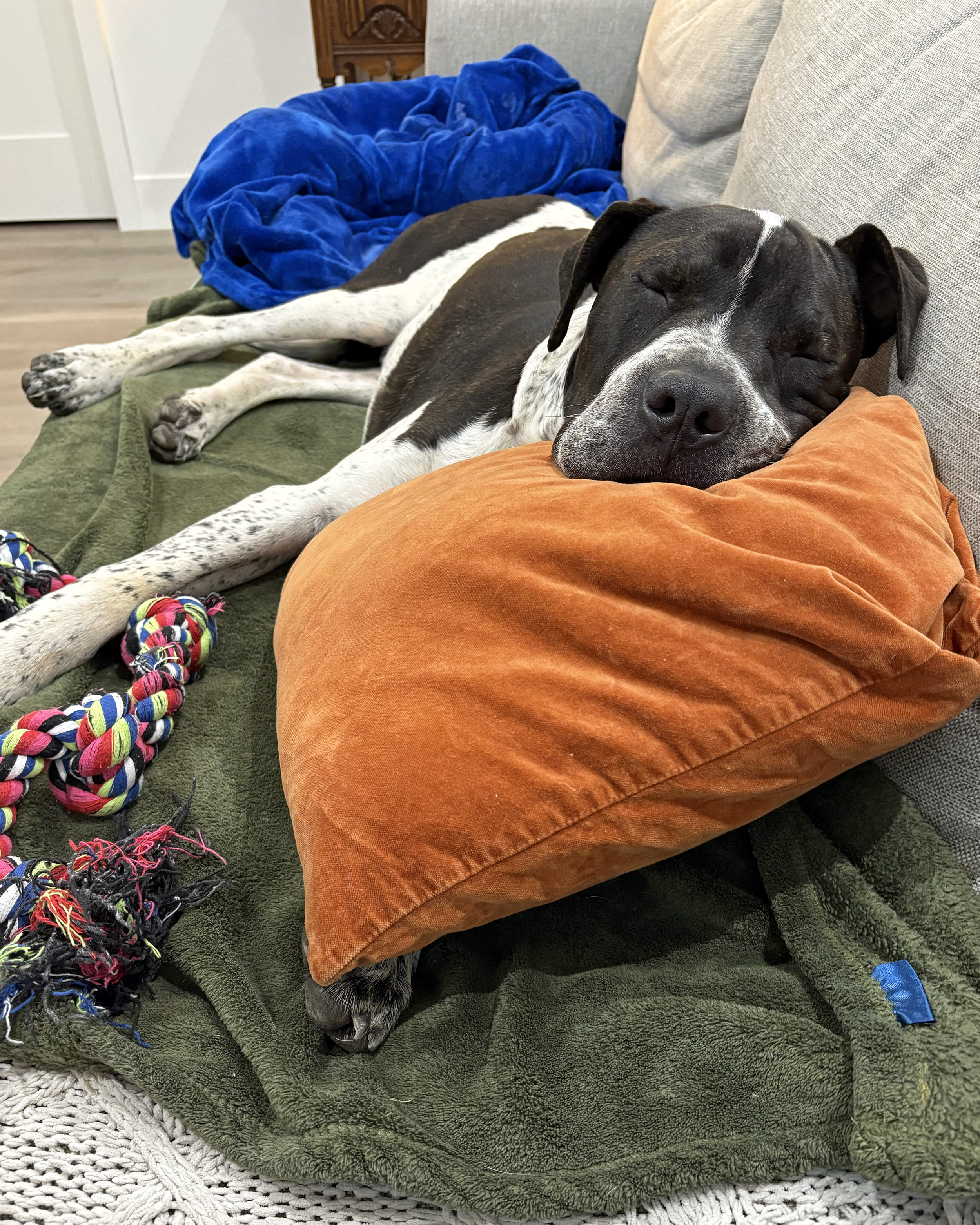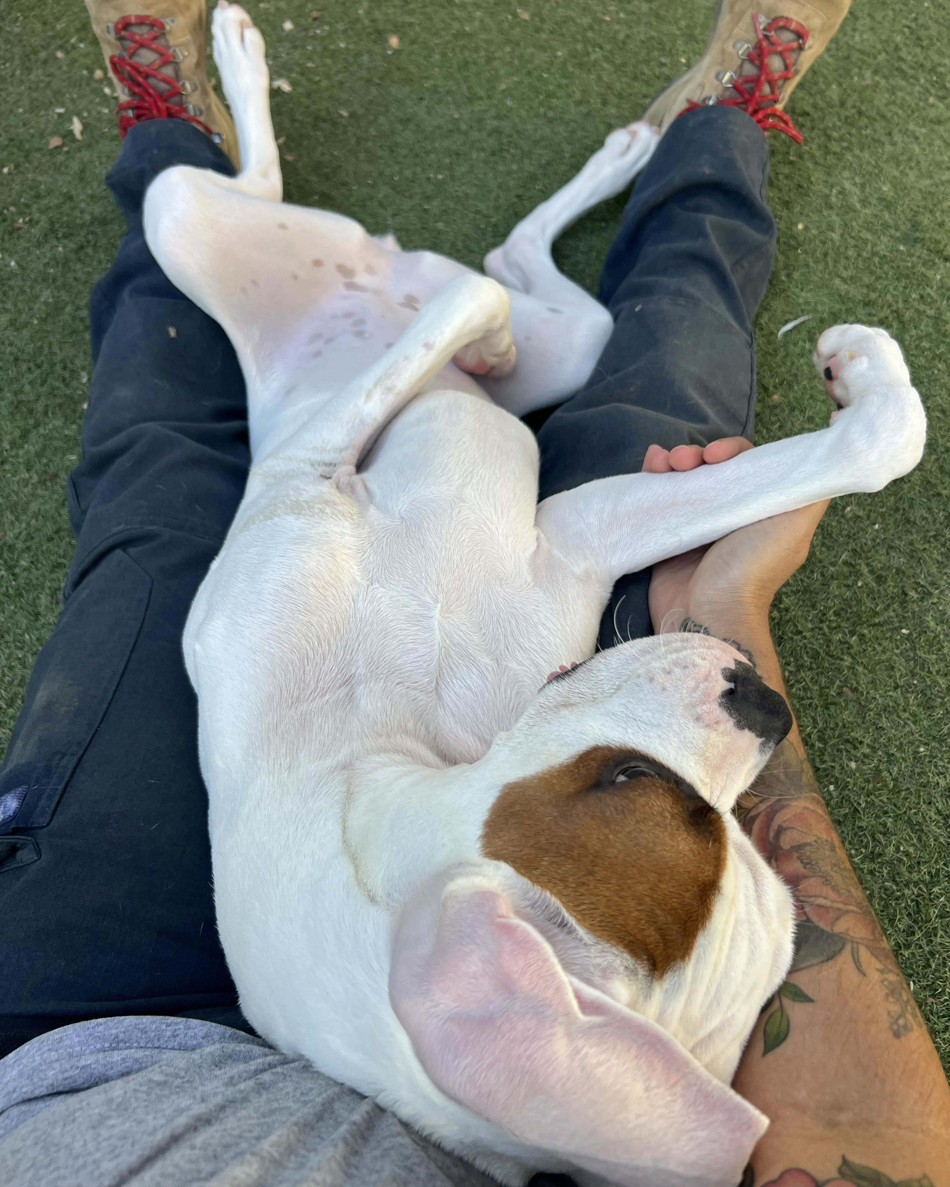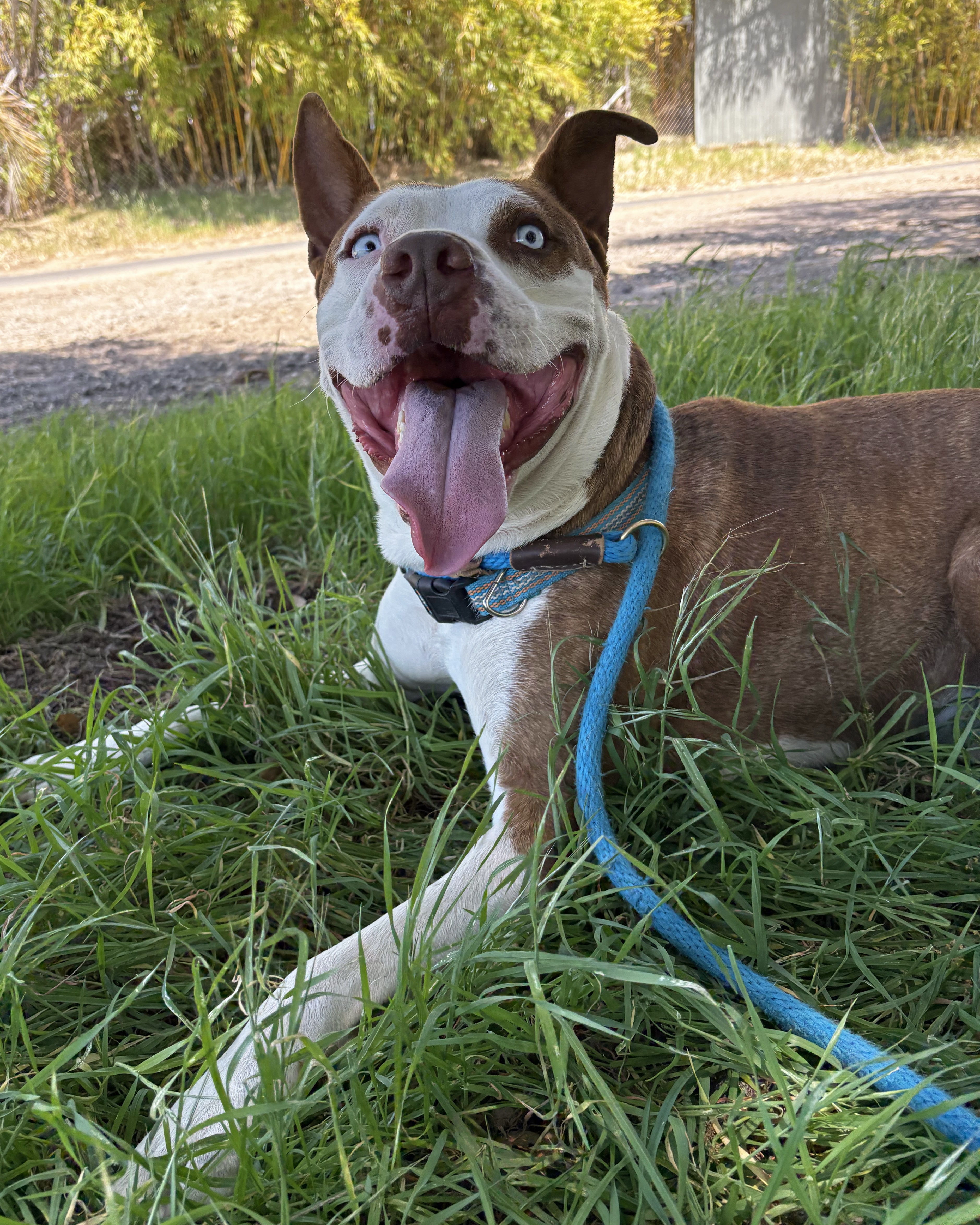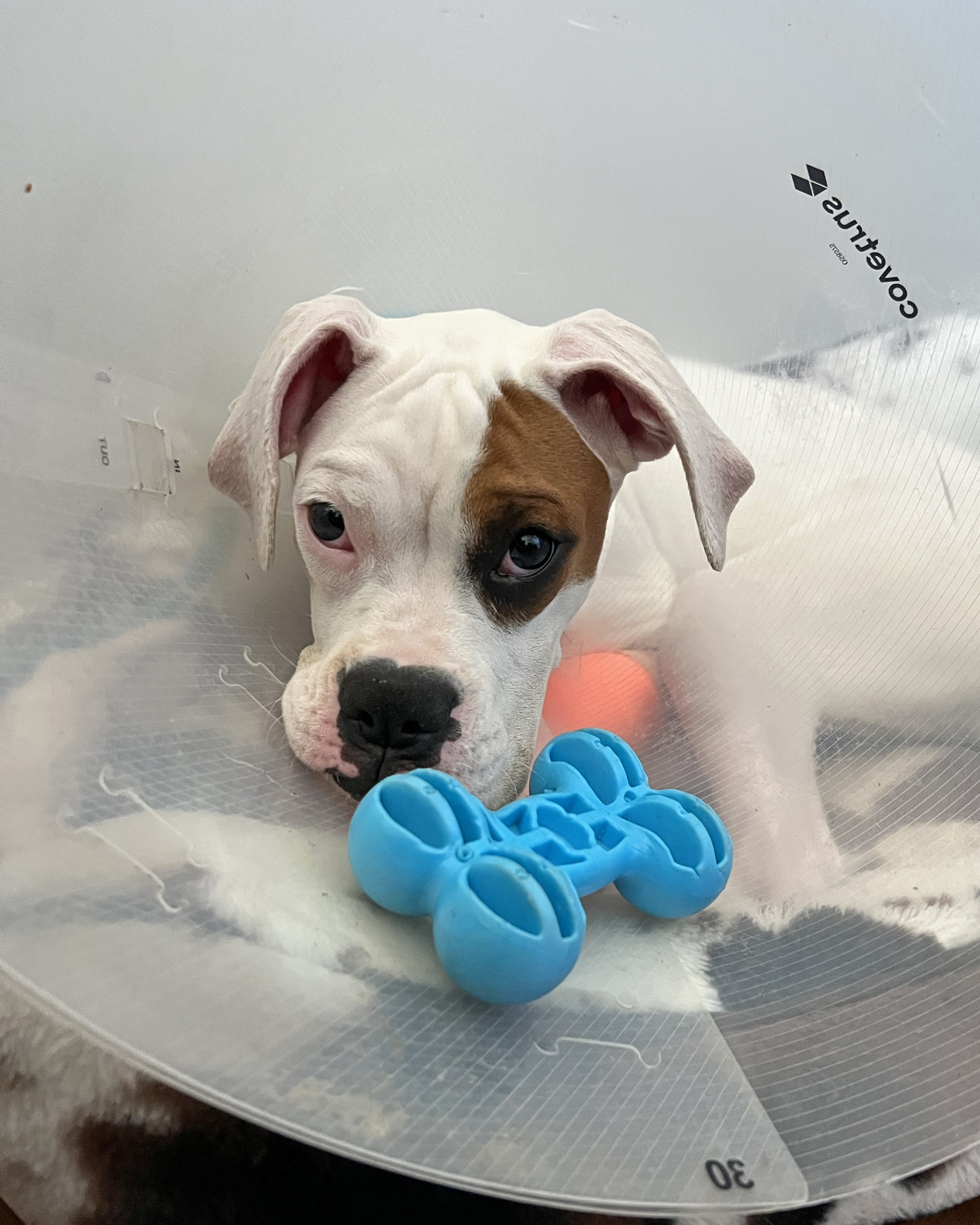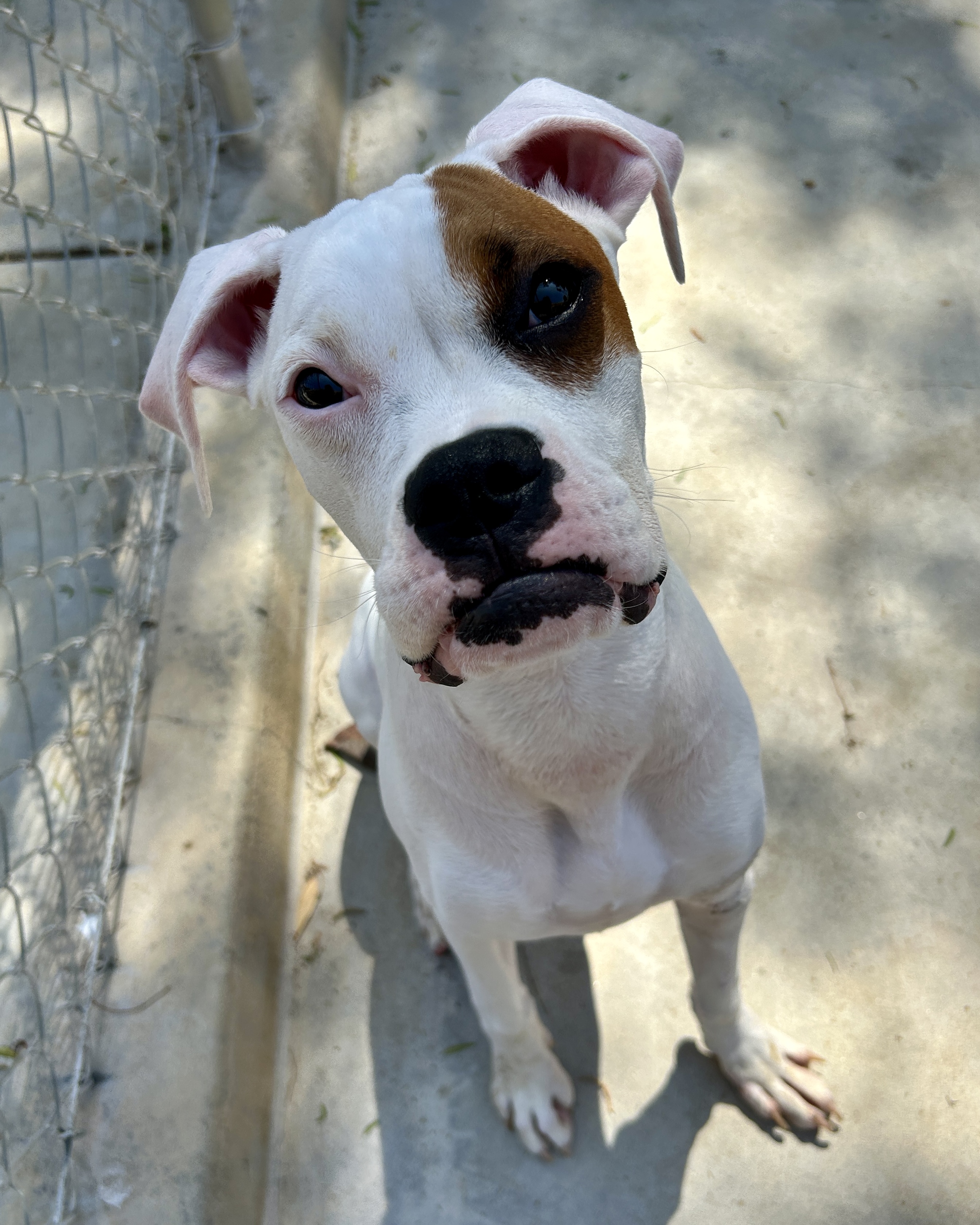 Our sweet girl, Bullseye, has come a long way on her journey, and we’re thrilled to share that she is now ready to find her forever home! This lovable 6-month-old Boxer mix pup came to us as a stray in early July of this year. Though we don’t know much about her past, what we’ve learned since she arrived 80 days ago speaks volumes about her strength, charm, and affectionate spirit. Now we need your help to find Bullseye the family she deserves!