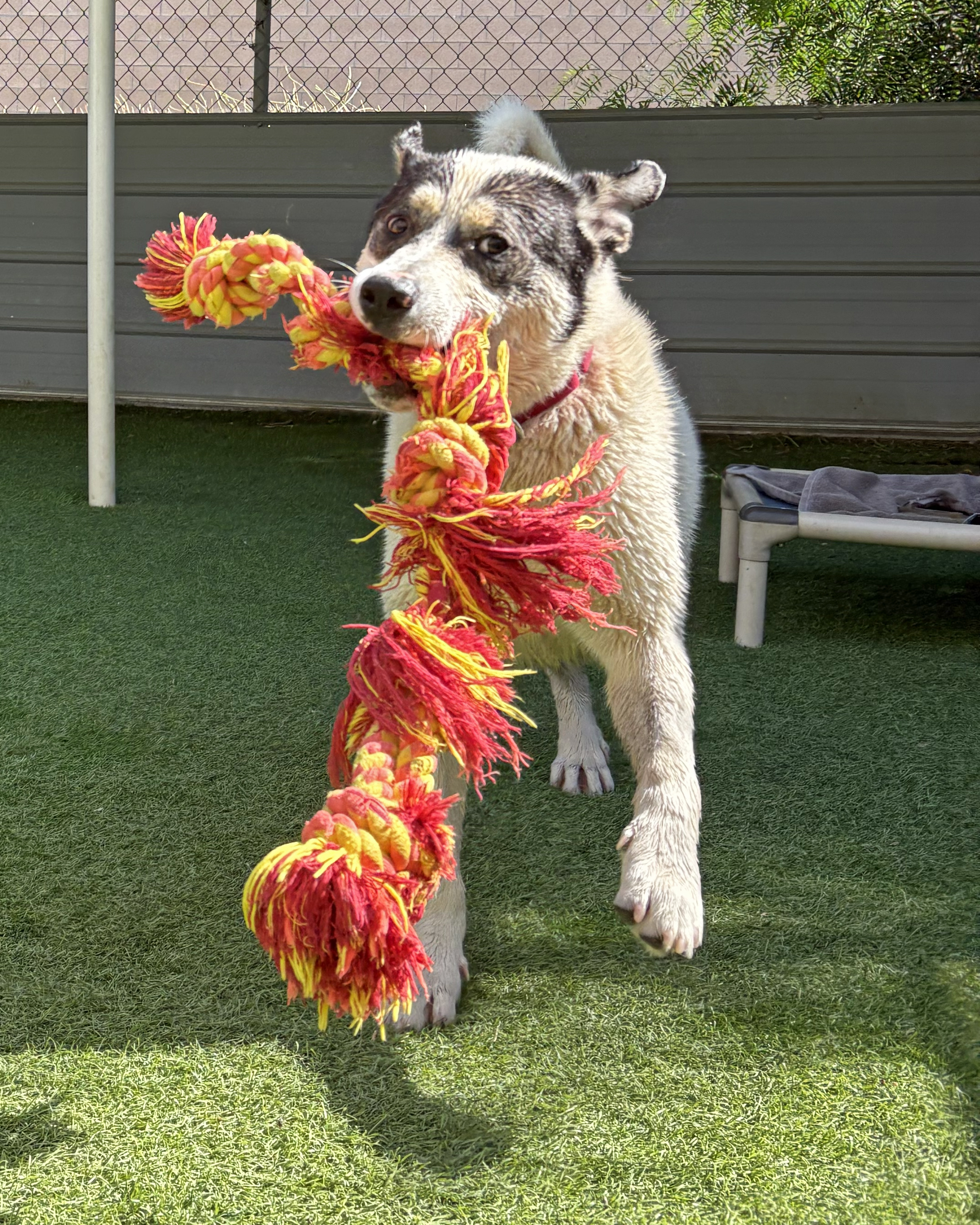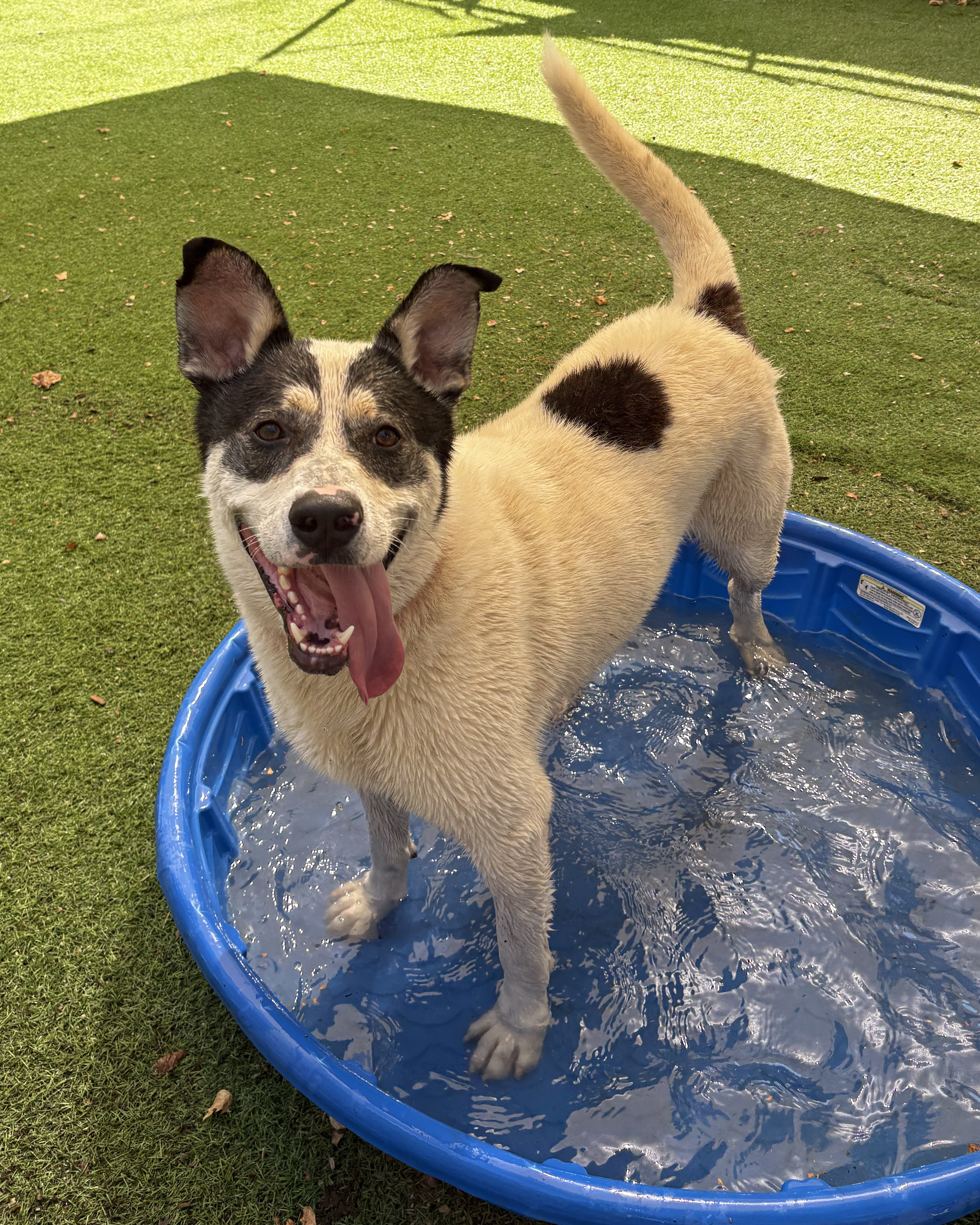 Say hello to Wilson! Some dogs just seem born for adventure, and Wilson is one of them. This 4-year-old Border Collie mix came to us from Woods Humane Society, and he’s been reminding us every day just how fun life can be when you’ve got the right buddy by your side. Wilson is the kind of dog who lights up at the sight of water, whether it’s a splash in a pool, a romp with the hose, or the dream of a beach day. He’s happiest when he’s wet and wagging his tail. Pair that with his love of fetch, and you’ve got a pup who’s built for outdoor fun!