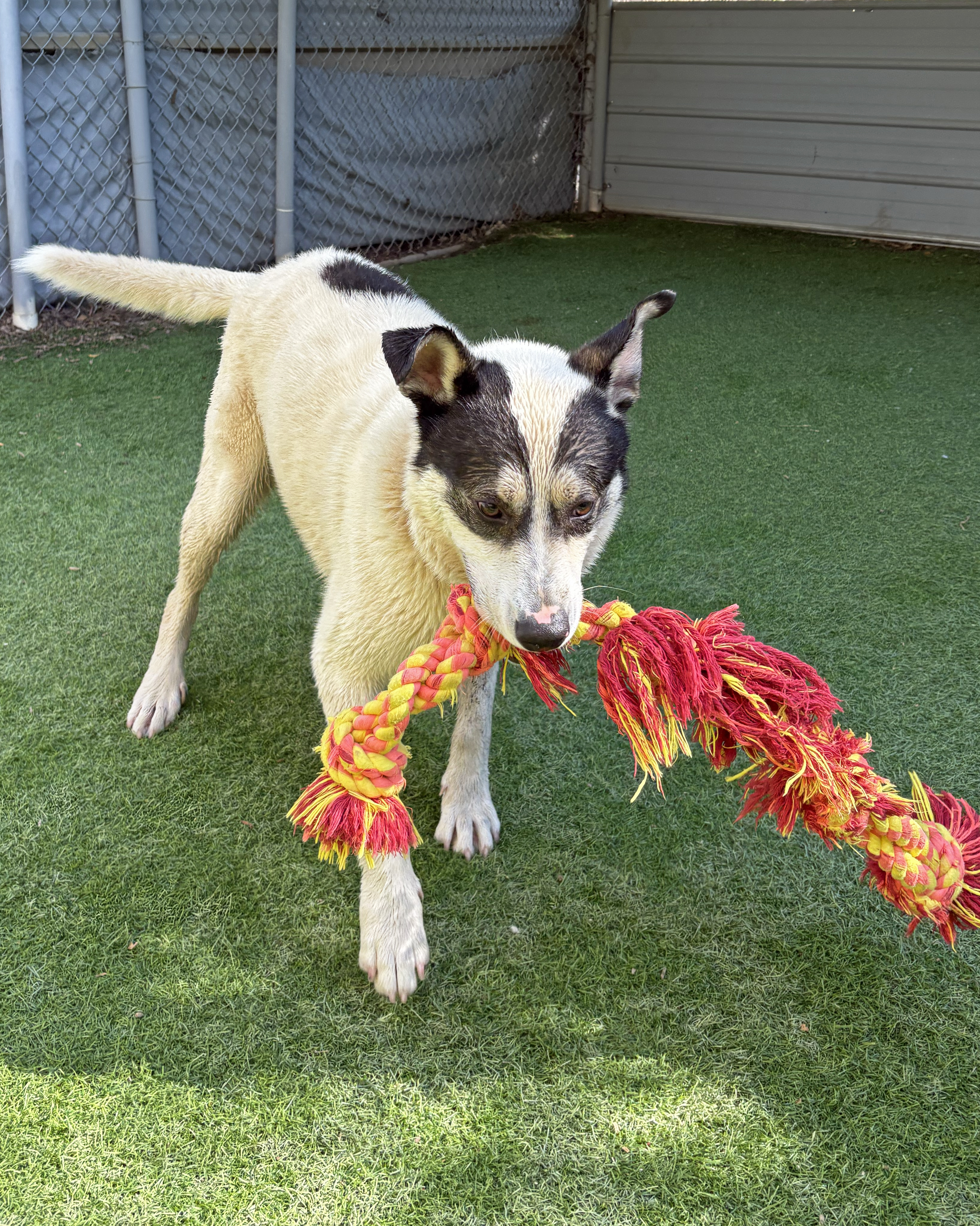 Ricky Bobby is a 2.5-year-old Border Collie mix with a big heart and even bigger ears! At around 70 pounds, this smart, playful boy loves to fetch, play with toys, and show off his basic commands. Like his namesake suggests, this handsome guy has a need for speed. However, what he needs now more than ever is a calm, loving place to call home.