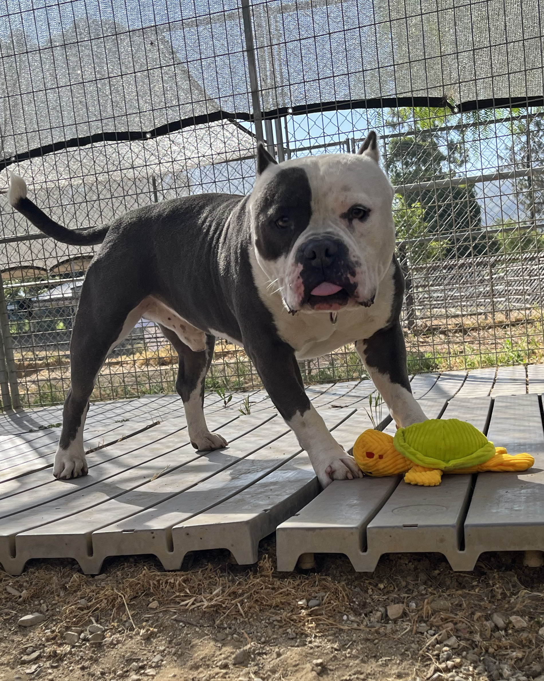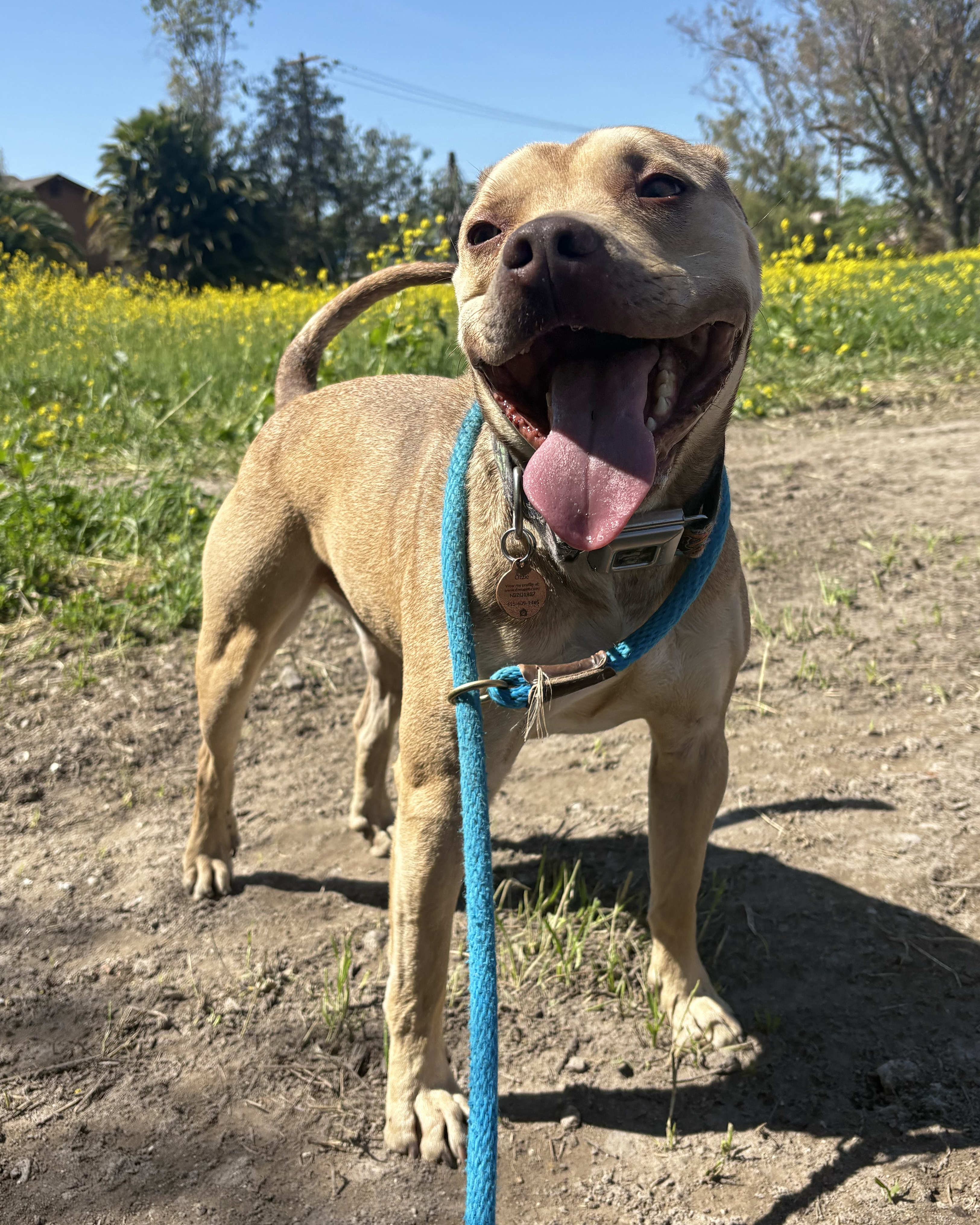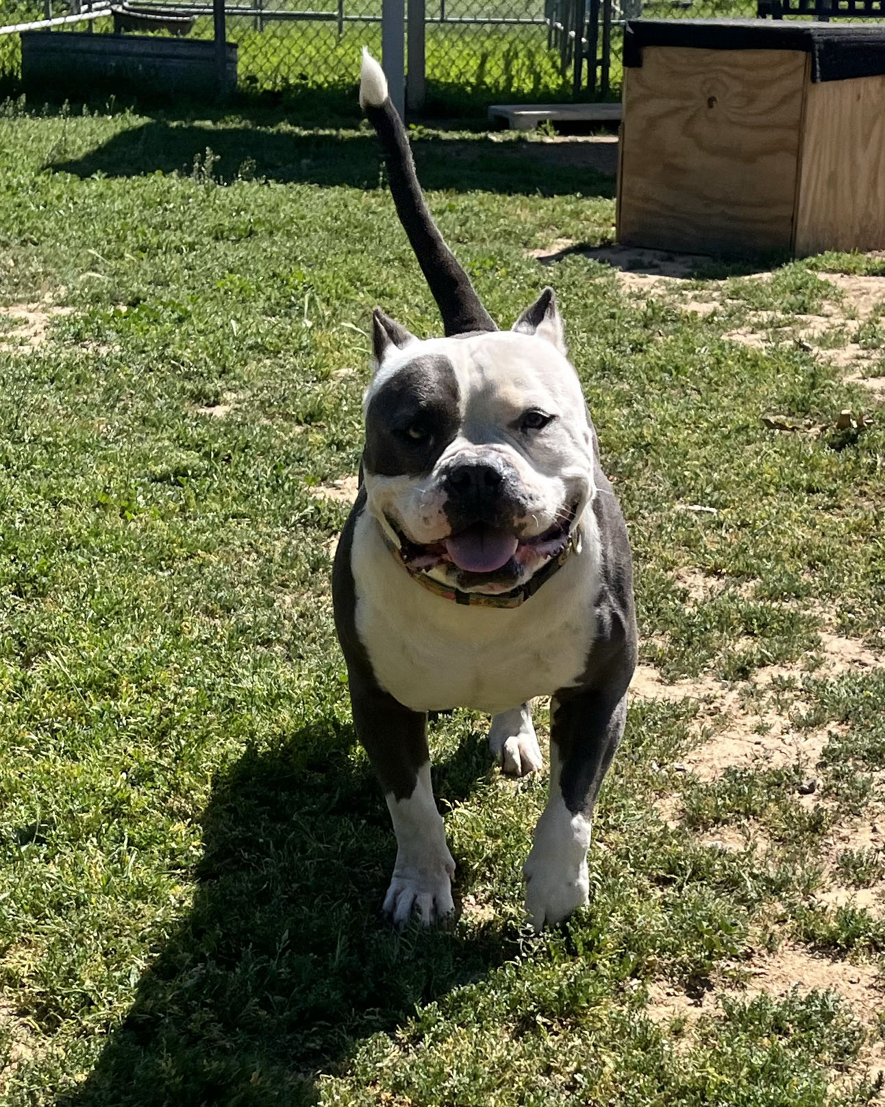 If you're looking for a pup with pep, personality, and plenty of zoomies, Ozzie might just be your perfect match! This handsome 5-year-old Pittie mix has been with us since mid-January, and he's more than ready to leave shelter life behind for good. With his compact, sturdy build (we like to call him "schmedium-sized"), Ozzie brings just the right amount of strength and snuggles to the table. Ozzie is a classic free spirit; he loves to stay busy, explore, and run out his energy in joyful bursts. Independent at heart, he's perfectly content doing zoomies solo, but he’s also very into people and won’t hesitate to share his thoughts when he's feeling playful or excited. He’s a talkative guy with a big personality and a bigger heart.