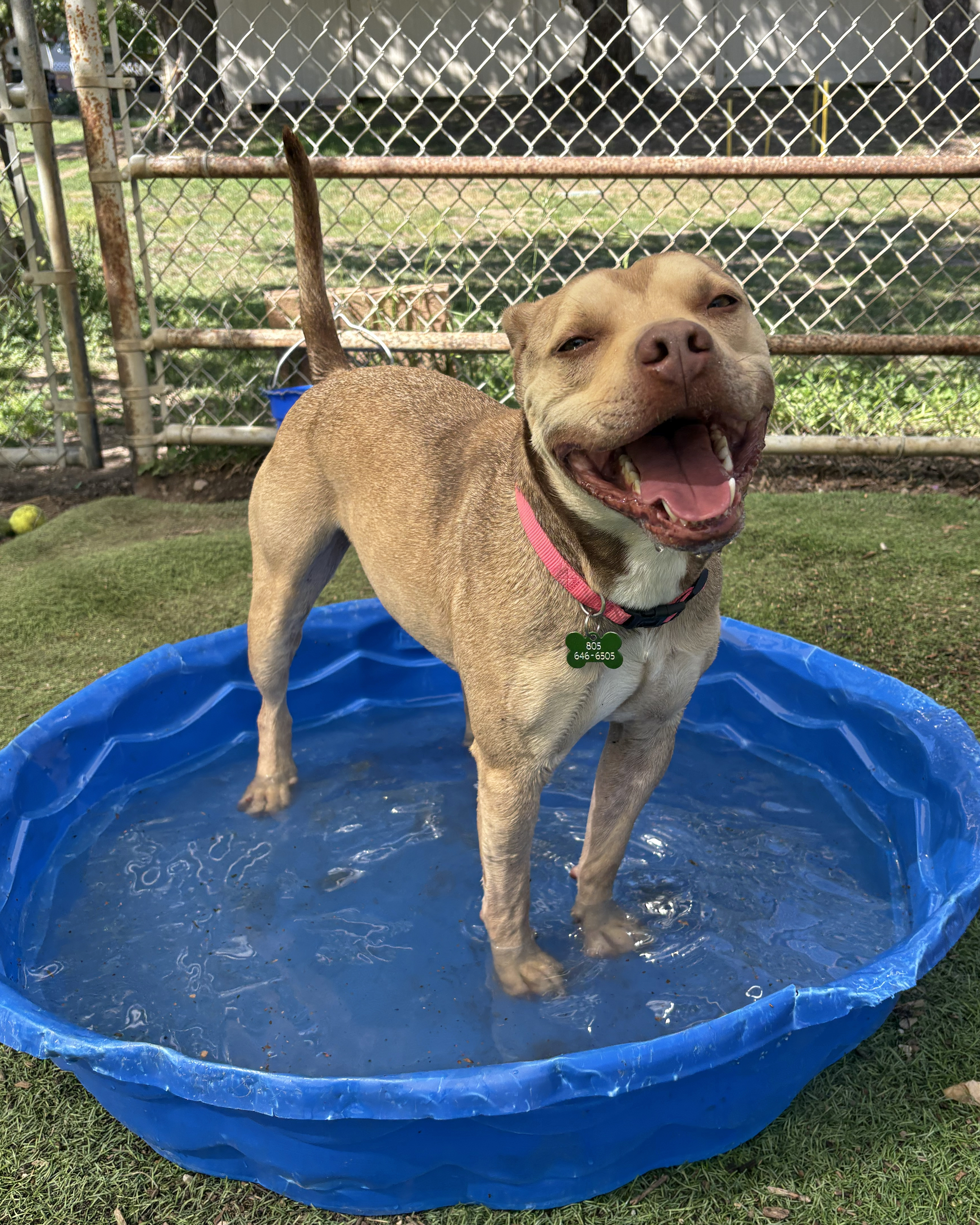Meet Guava, an 11-month-old Pit Bull Terrier with a big personality and an even bigger heart! This sweet, playful pup has been at the HSVC for nearly 100 days, and while he’s become a staff favorite, he’s more than ready to find a forever home of his own. With his goofy charm and boundless energy, Guava brings joy to everyone he meets. Though he's still very much a puppy, Guava is full of energy and always ready for a good time. He absolutely loves to play. Whether it's chasing toys, running around in the yard, or goofing off with his doggy friends. Guava is a true playgroup rockstar, thriving in the company of other dogs and showing how much he thrives in a social environment. If you already have a pup at home looking for a playmate, Guava could be the perfect addition to your pack!