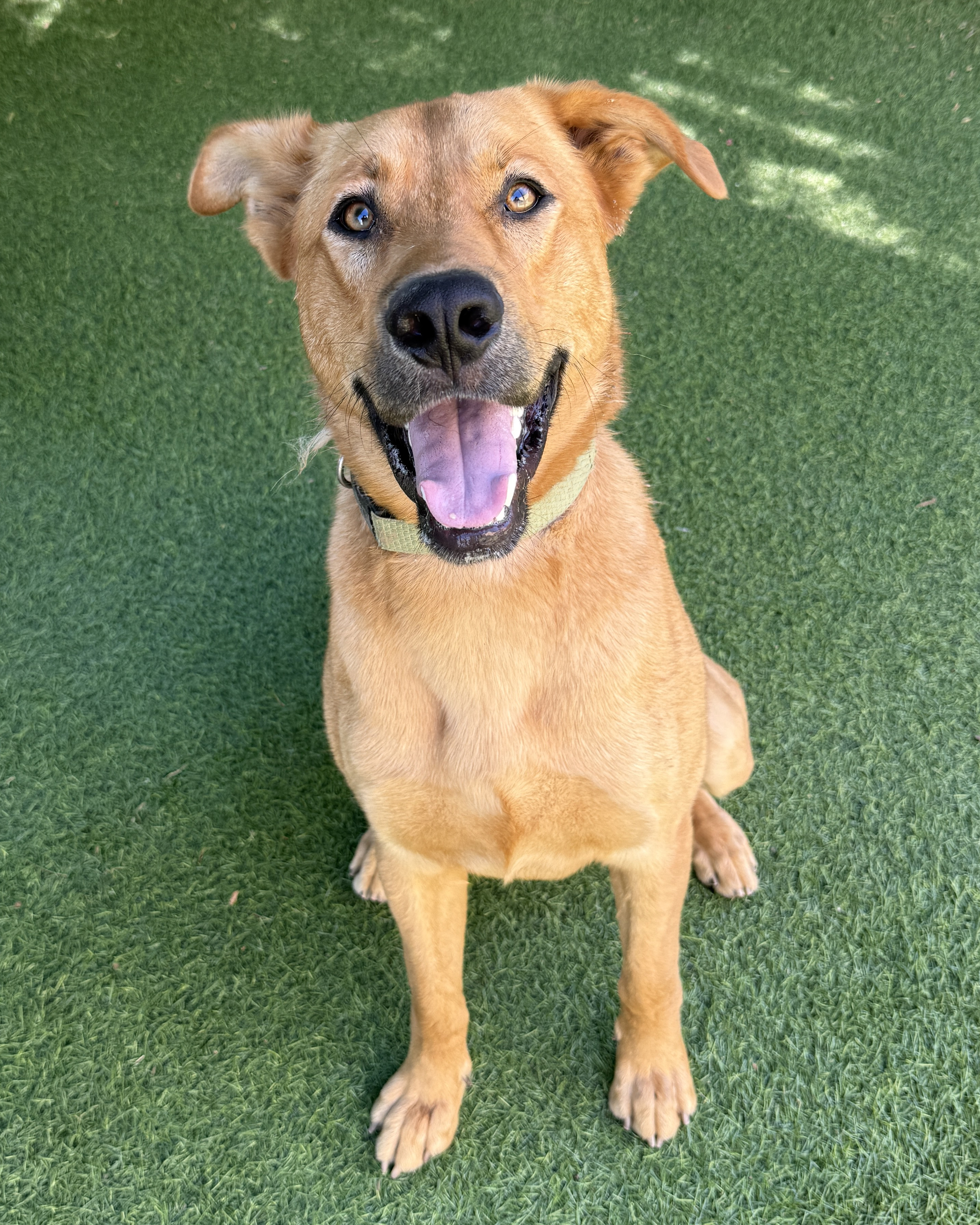 Goofy, gorgeous, and grinning from ear to ear, say hello to Rusty, a 1-year-old German Shepherd who's been lighting up the shelter with his big personality, infectious energy, and even bigger heart. For the past 100 days, Rusty has patiently been waiting to find his forever family, dreaming of a loving home where he can be showered with love, enjoy playtime, and embark on new adventures. In the meantime, he's been busy stealing more than a few tennis balls (and hearts) along the way. Rusty truly is the full adventure package. He’s playful, energetic, and always eager to turn any ordinary day into a fun-filled escapade. Whether he's chasing after a ball, sprinting across a field for the joy of running, or clowning around to get a laugh, Rusty lives life with his tail wagging vigorously and his tongue floppy.