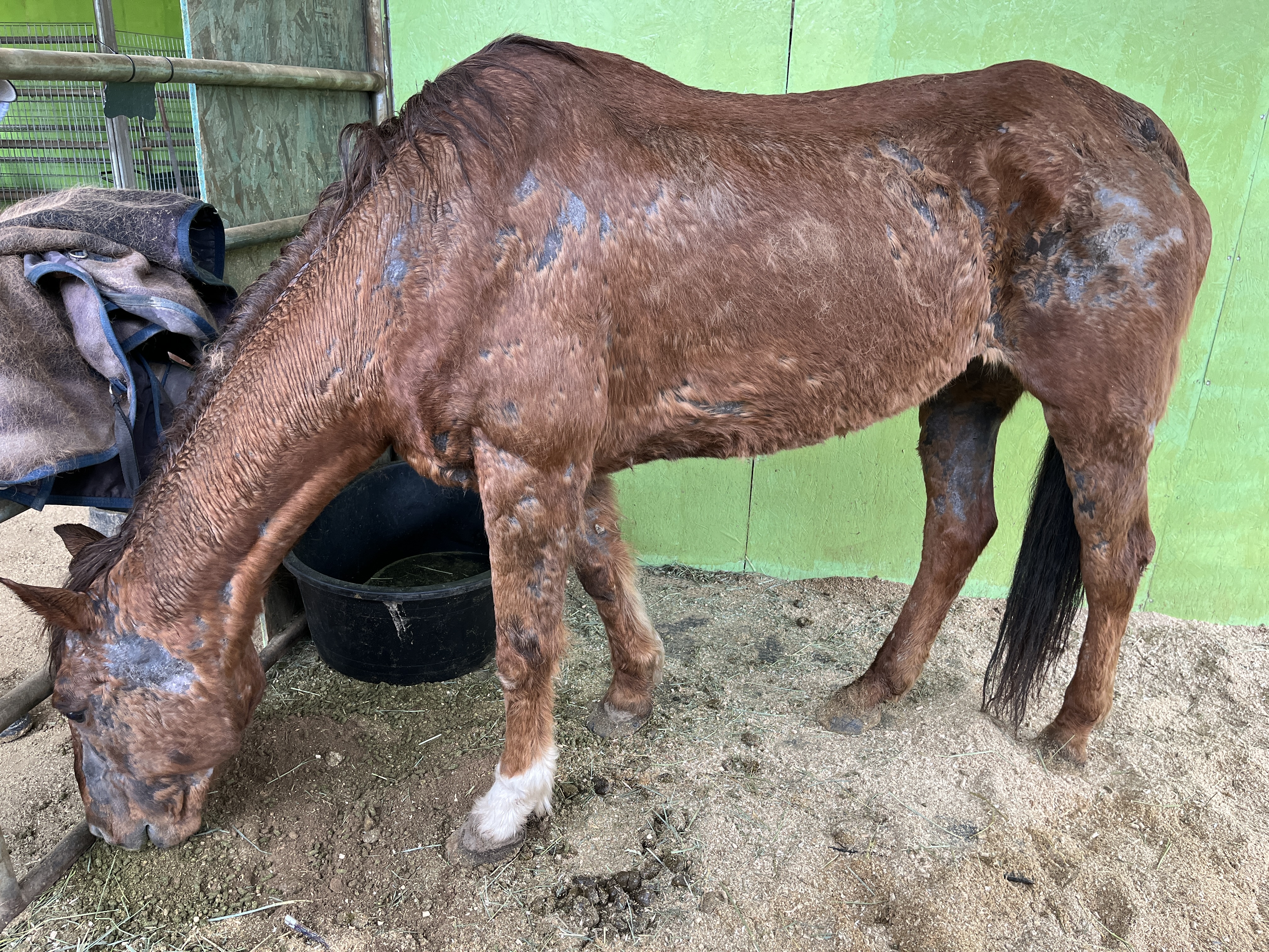 When our Humane Officers began investigating a concern for a neglected horse, it became clear that Beauty had weathered more than her fair share of hardship. The sweet horse was emaciated, weak, and suffering from an aggressive case of rain rot that covered much of her body. After working with our Humane Officers, Beauty's previous owner decided it was in her best interest to be signed over to the shelter. She was transferred to HSVC and began her journey to recovery. With dedicated medical care, a tailored nutrition plan, and plenty of love and patience from our staff, Beauty began to heal.