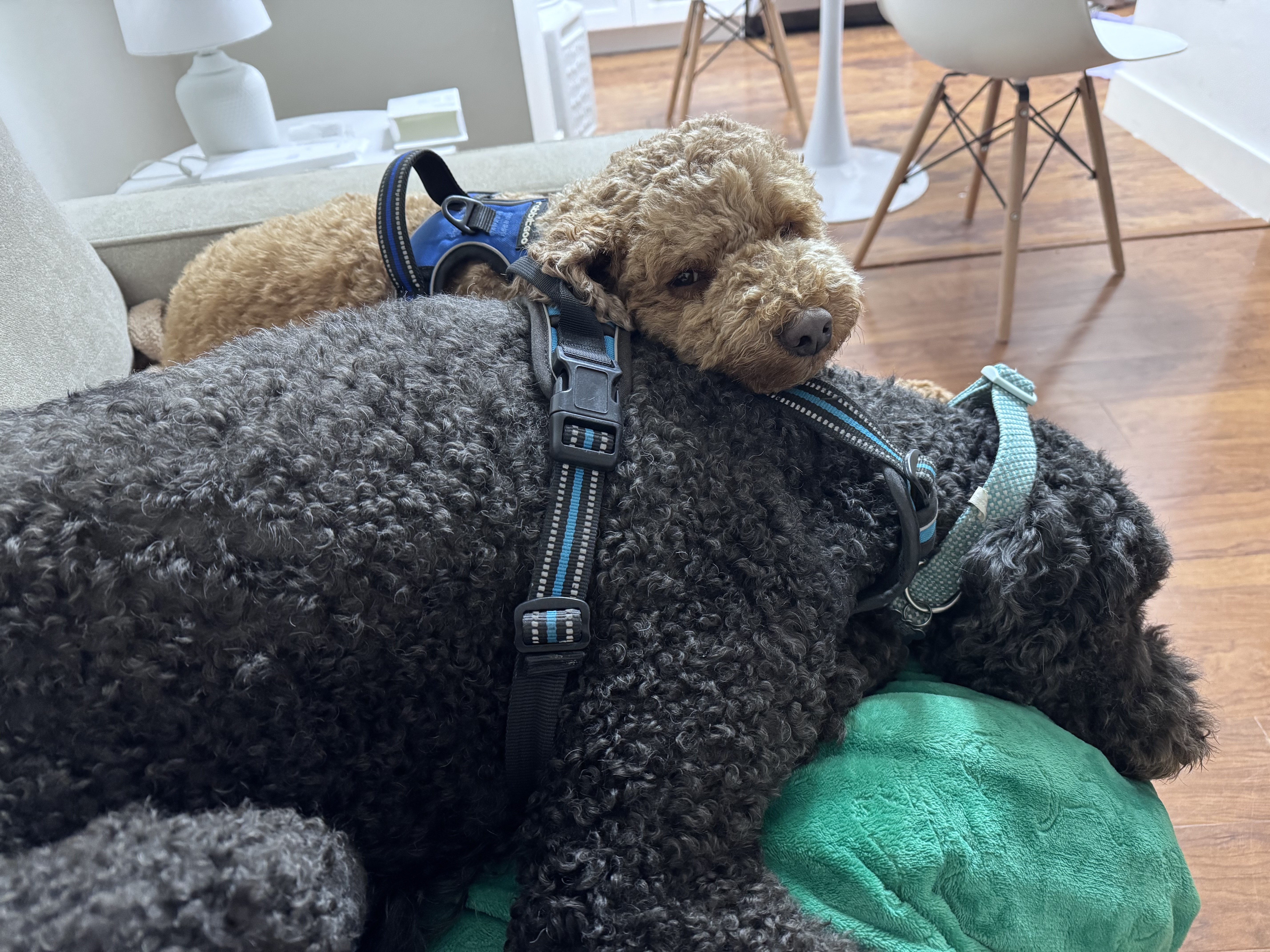 Many in our community will remember the story of Baker, a 2-year-old miniature Poodle who stole hearts after being found as a stray along the highway in mid-February 2024. When he arrived at the shelter, Baker was in rough shape. The good Samaritan who brought him to HSVC found him underweight, extremely matted, suffering from overgrown nails, and battling painful infections in his eyes, ears, and paws. Despite his condition, Baker’s sweet spirit never dimmed. With time, love, and a lot of TLC from our dedicated staff, the sweet pup made a full recovery and found his happily ever after with Thaidra and his new brother, Blue!