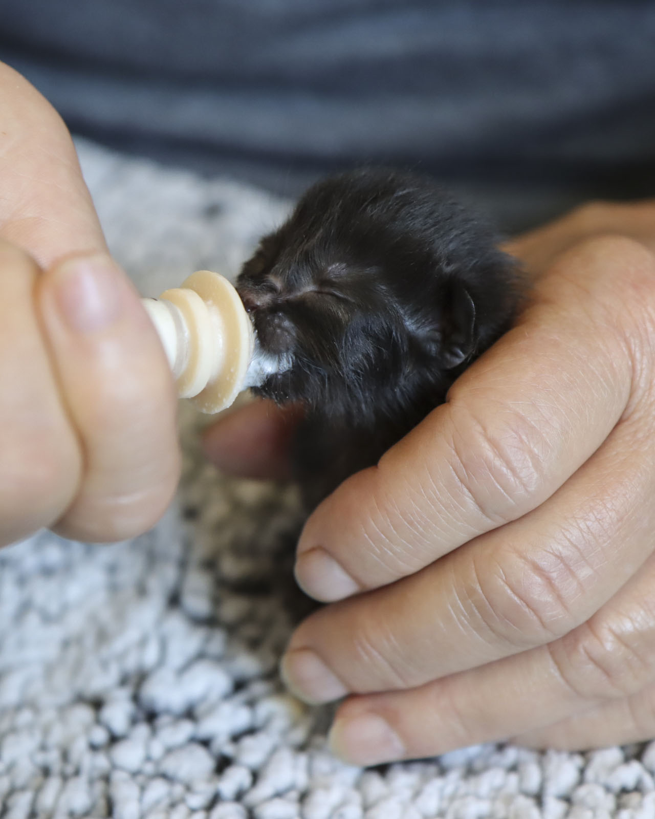 Kittens under four-weeks-old are incredibly fragile and depend on either their mother's milk or bottle feeding to survive. Do not feed them cow's milk or any other milk that is not specifically formulated for kittens. They lack the proper enzymes to digest the lactose in milk properly, which can lead to digestive issues such as diarrhea and dehydration. During this early stage, they typically nurse every two to three hours around the clock. These tiny babies may have closed or newly opened eyes, and will not be able to eat on their own. After feeding, they’ll need gentle burping, pottying, and stimulation to promote bonding and comfort. By the time they reach five to eight weeks, kittens can usually eat wet food and may be ready for general foster care and socialization.